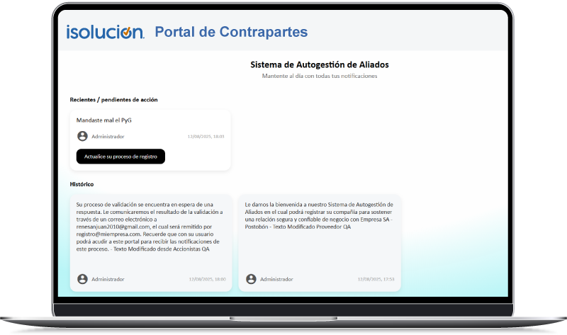 Solicita una demostración gratuita y descubre cómo ISOLUCIÓN Portal de Contrapartes puede transformar tu proceso de vinculación.